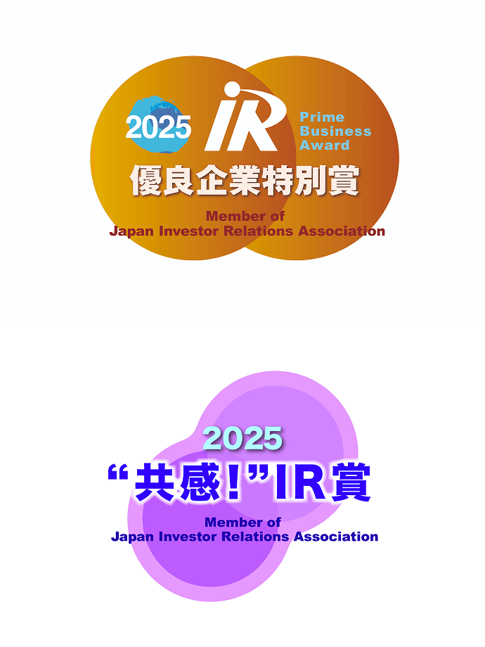 一般社団法人日本IR協会が主催する「IR優良企業賞2025」において、タイムリーな情報開示やイベントの充実、個人投資家を対象にした活動にも取り組んでいることなどが評価され、「IR優良企業特別賞」および「"共感!"IR 賞」を受賞しました。