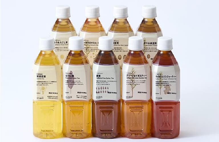 We calculated the CO₂ emissions of MUJI beverage aluminum cans and 100% recycled PET bottles across their full lifecycle—from raw material procurement to recycling, excluding warehouse storage, sales, and usage. The results showed that 100% recycled PET bottles generate emissions equal to or lower than those of aluminum cans.