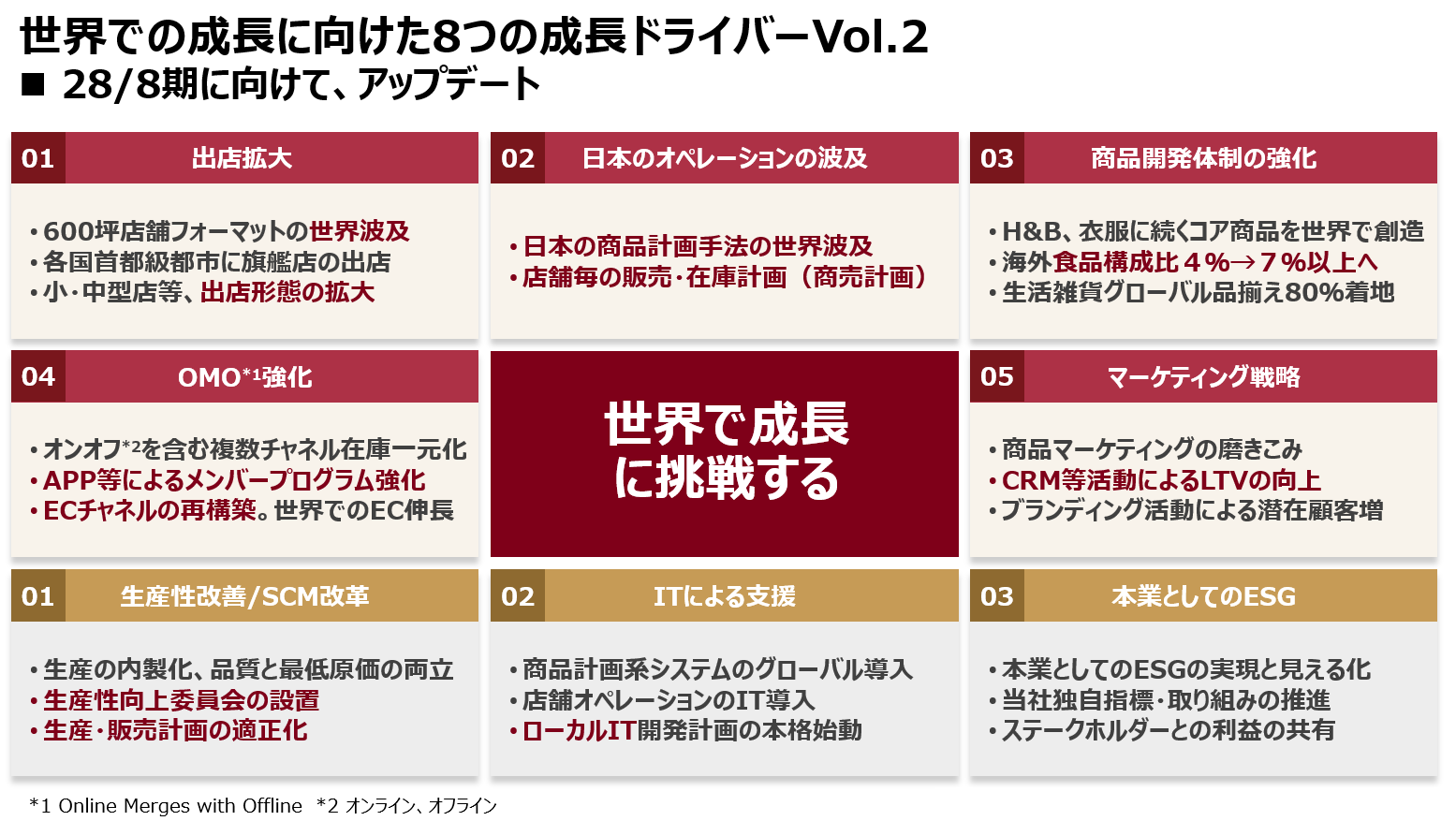 そして今、その日本での基盤を基に、第二創業を進化させ、世界で更なる成長に挑戦していきます 。
