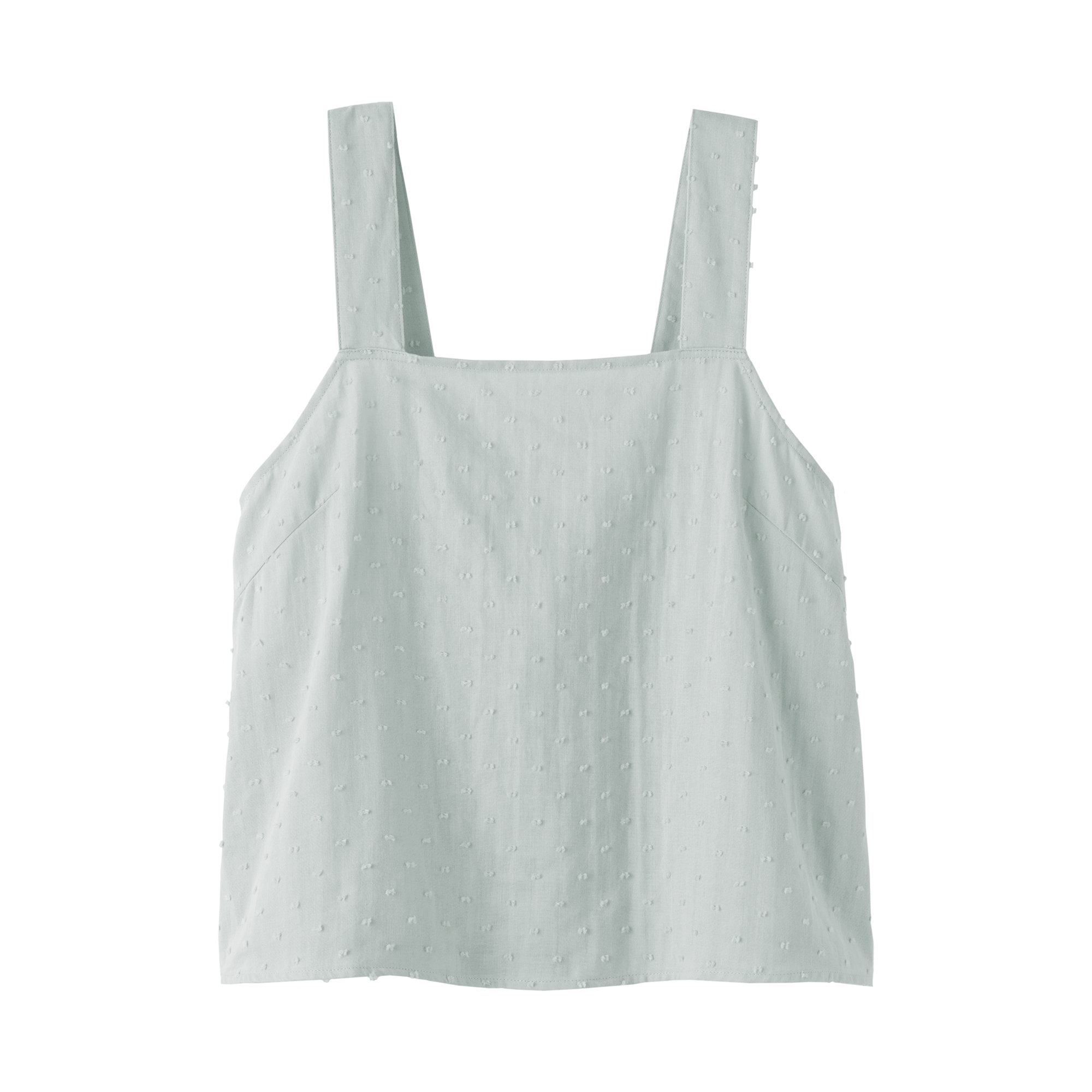暑い季節やリラックスタイムに心地よく着られるふんわりとしたシルエットのタンクトップです。背面にあるゴムは生地でくるみ、直接肌に触れない仕様にしました。肌に密着しないさらりとした生地と軽い着心地が特長です。インナーやルームウェアとしてはもちろん、トップスとしても着用できるデザインです。