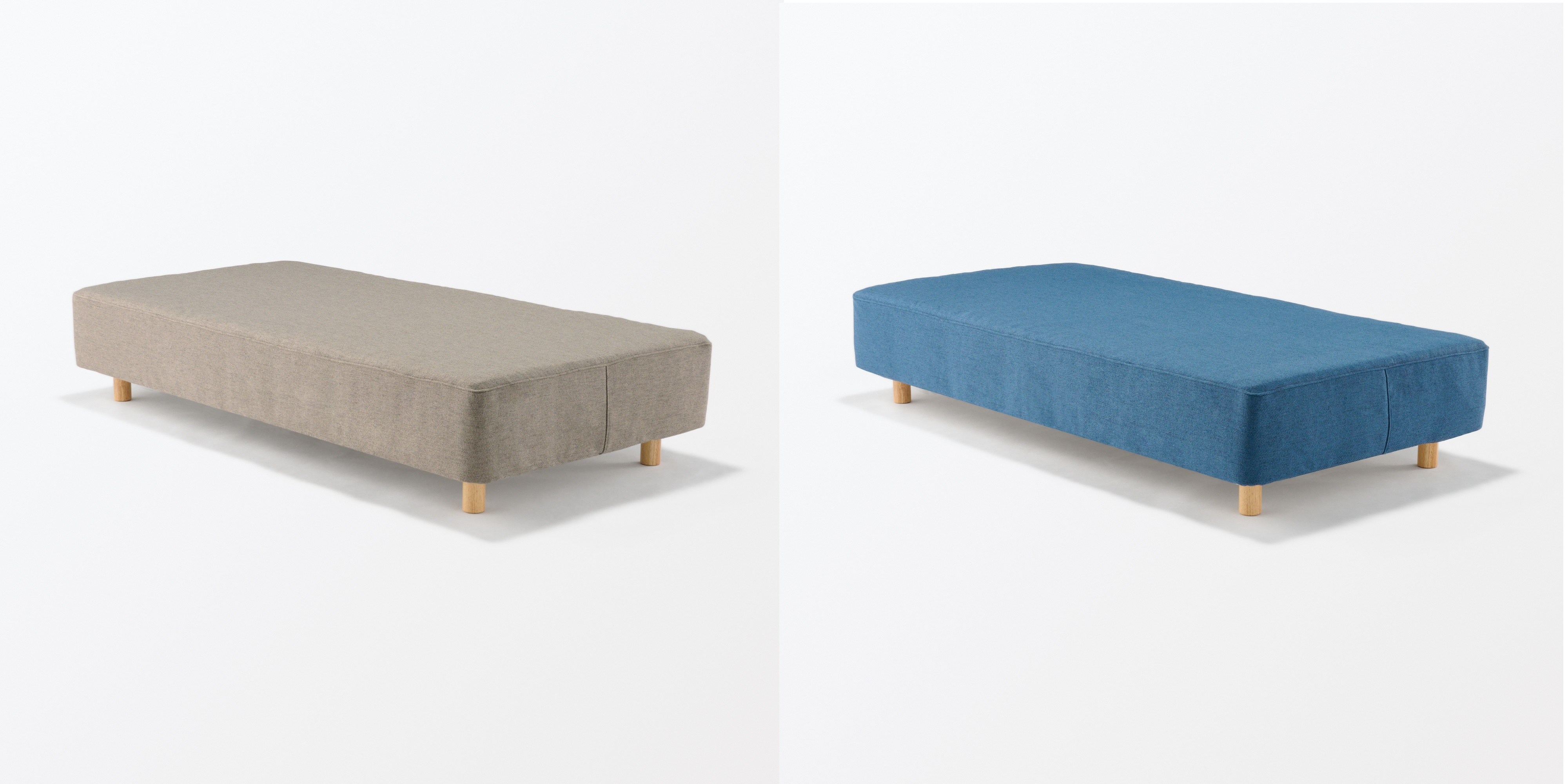 さらに今回は、1991年の発売以来、改良を重ねながら多くの方にご愛用いただいている「脚付マットレス」に、ソファカバー素材のカバーを標準装備してソファとして使えるベッド「脚付マットレスポケットコイル(組み立て仕様)シングル ベージュ/ブルー」、および「脚付スツール オレンジ/ベージュ」もラインナップしました。
