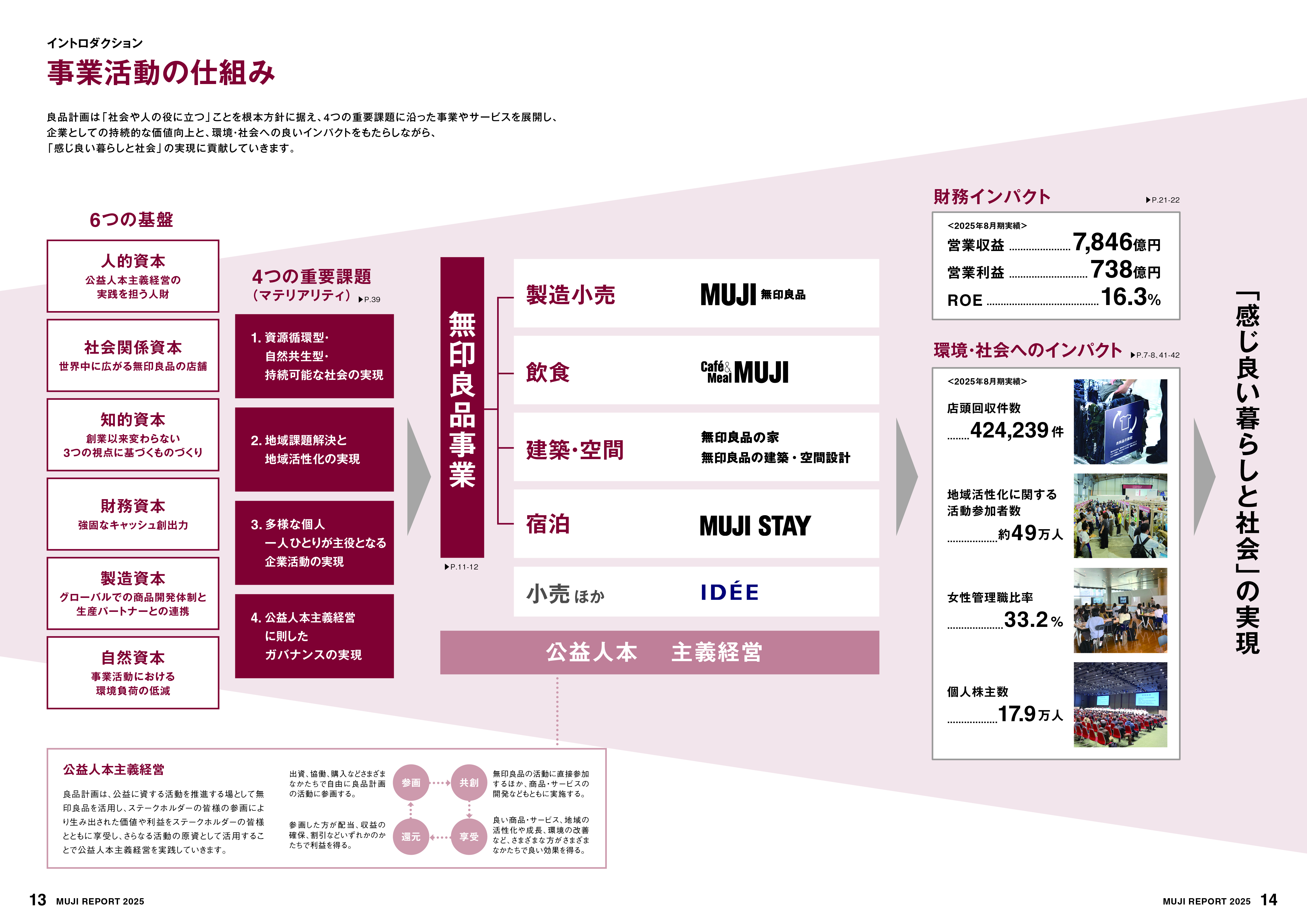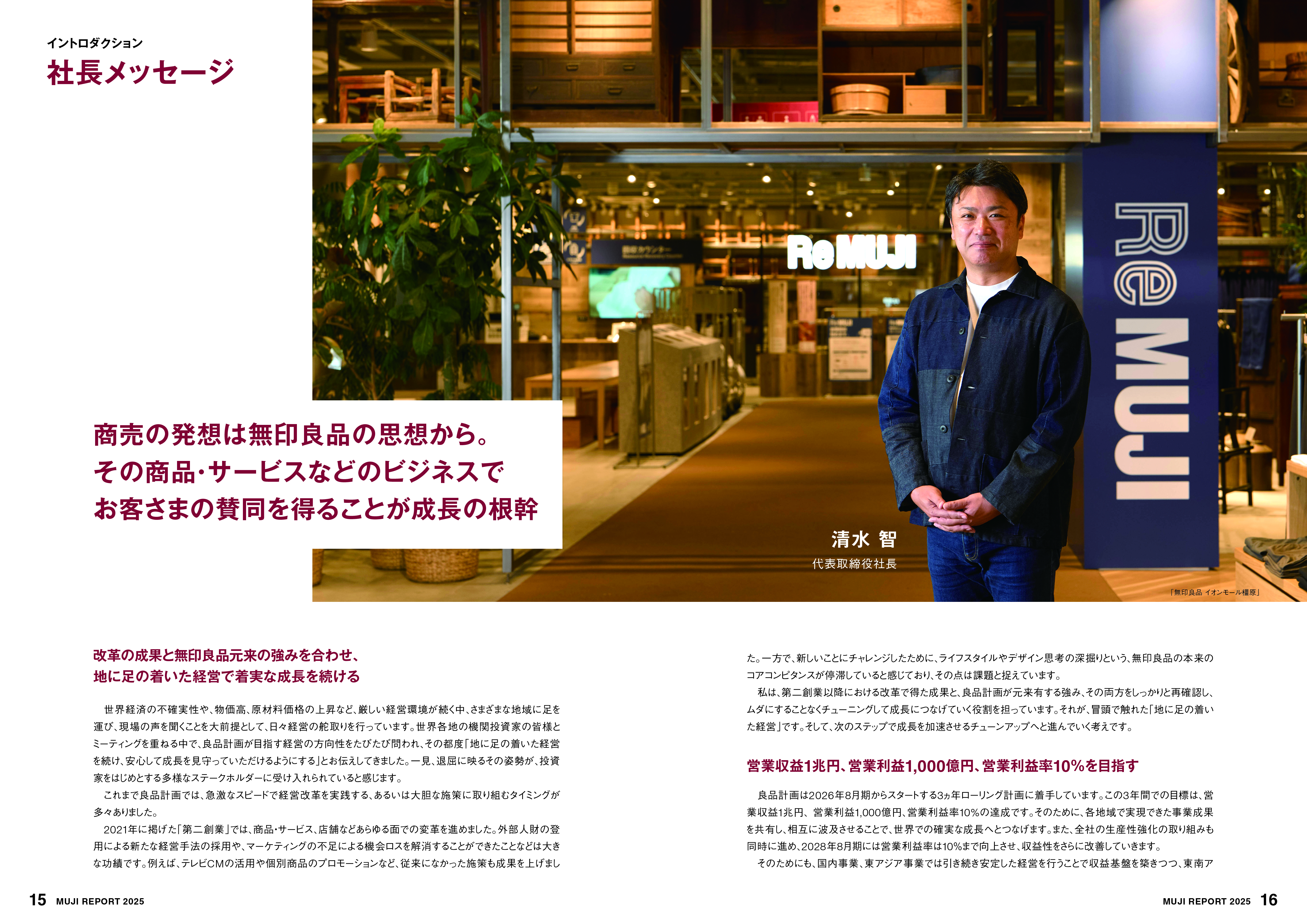 無印良品を展開する株式会社良品計画(東京都文京区/代表取締役社長 清水 智)は、本日、良品計画グループ統合報告書「MUJI REPORT 2025」(全93ページ)を発行し、コーポレートサイト上に公開しました。