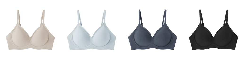 「ノンワイヤー 体にあわせて支えるブラジャー」は、伸縮性のあるシリコンを使用することで、ブラジャー全体がよく伸び、胸のふくらみに合わせて伸びる設計にしているので、浮いたりせず、さまざまな体型、胸の形にあったフィット感とホールド力を兼ね備えた商品です。素材には、綿混率を高めたストレッチ天竺素材を採用しました。直接肌に触れる部分を一枚布にすることで、縫い目による刺激を抑え、肌あたりをやさしくしています。