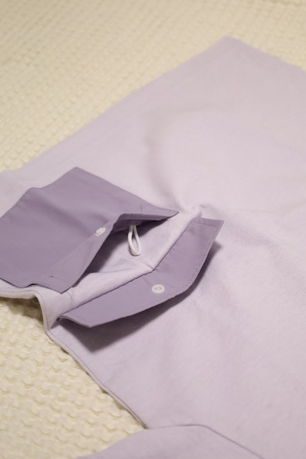 ポケットの開口部分には、こどもの力で開け閉めしやすいスナップボタンをつけ中身が落ちないようにし、中にはループをつけることで防犯グッズを引っ掛けることができるように工夫しました。ループの位置は、モニタリングを重ね、こどもが自分で取り外ししやすい最適な場所にしました。