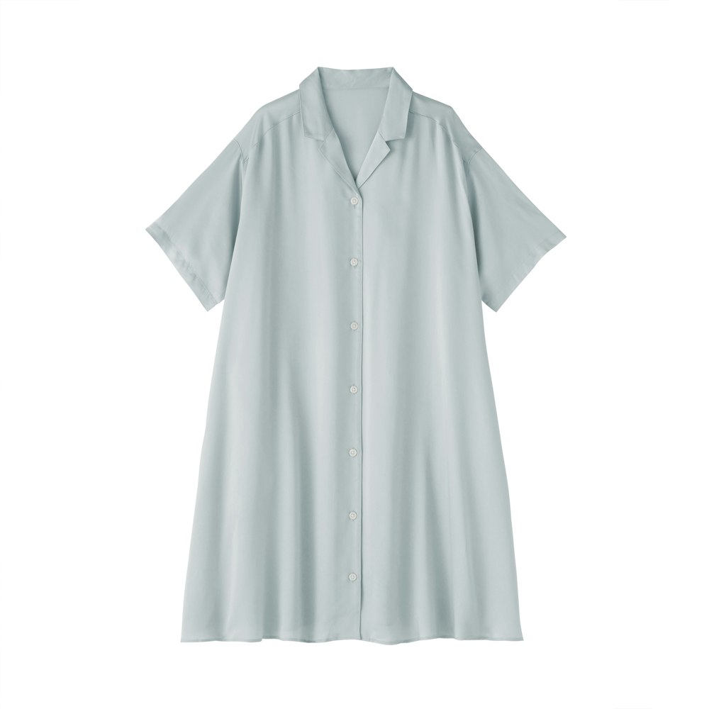 Aラインシルエットで、衣服の中に風が通る軽やかなつくりにしています。夏の暑さを快適に過ごせる、涼やかで上品な一枚です。