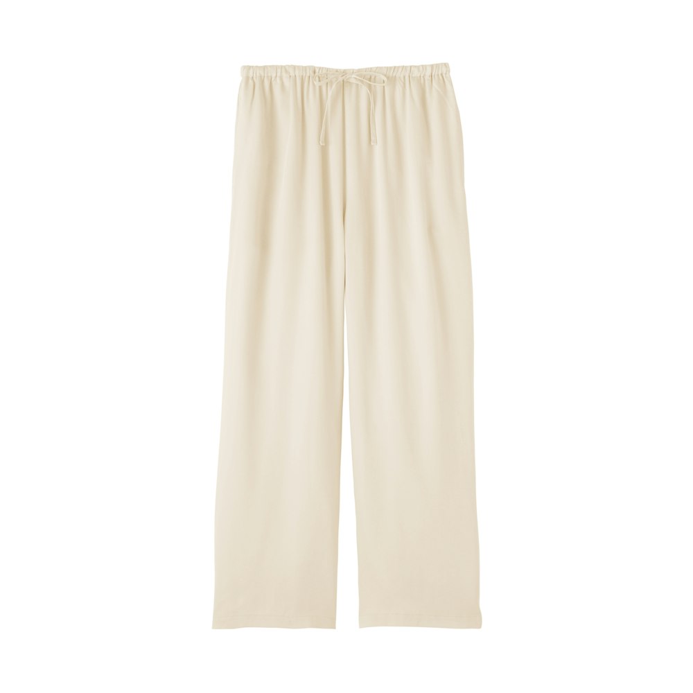 ストレートシルエットで、両脇にポケットを備えました。華奢なウエストゴムを採用し、リラックス感がありながらも上品な印象に仕上げています。単品のトップスと合わせて、ルームウェアとしても着用できます。